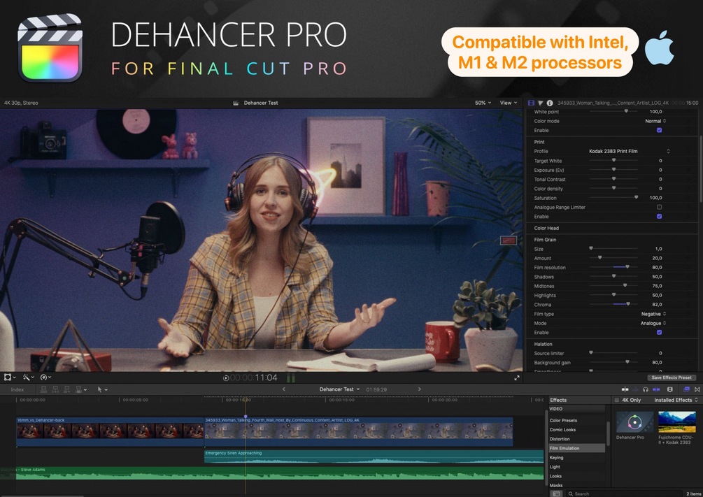 Dehancer PRO for FCPX with 60+ film profiles, Halation, Bloom, Grain, and other analog tools. Create unique film looks and forget the rules.